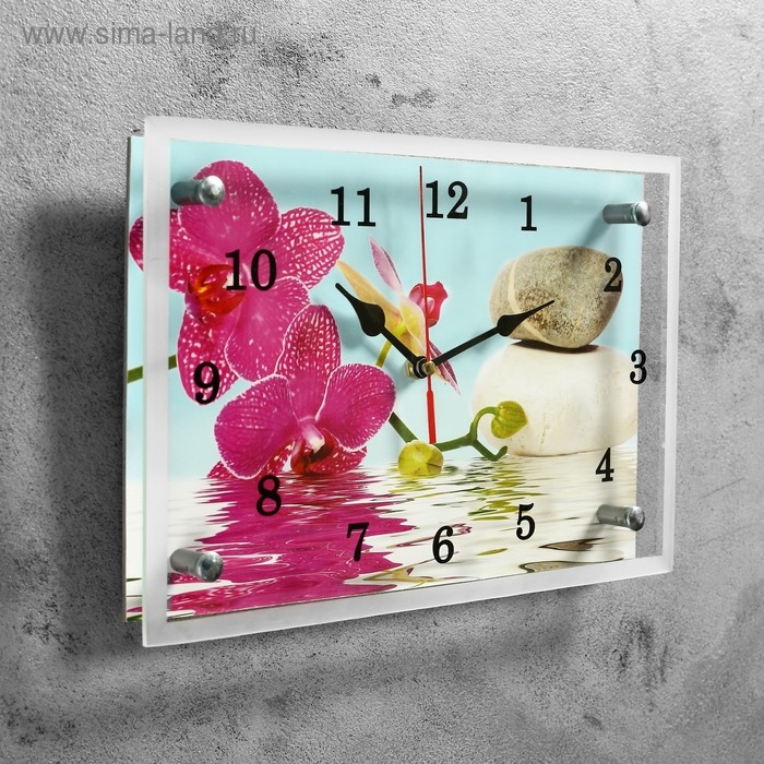 Часы-картина настенные, серия: Цветы, "Сиреневые орхидеи и камни", 20х30 см