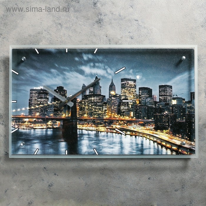 Часы-картина настенные, серия: Город, "Бруклинский Мост. Ночной Нью-Йорк", 35х60 см