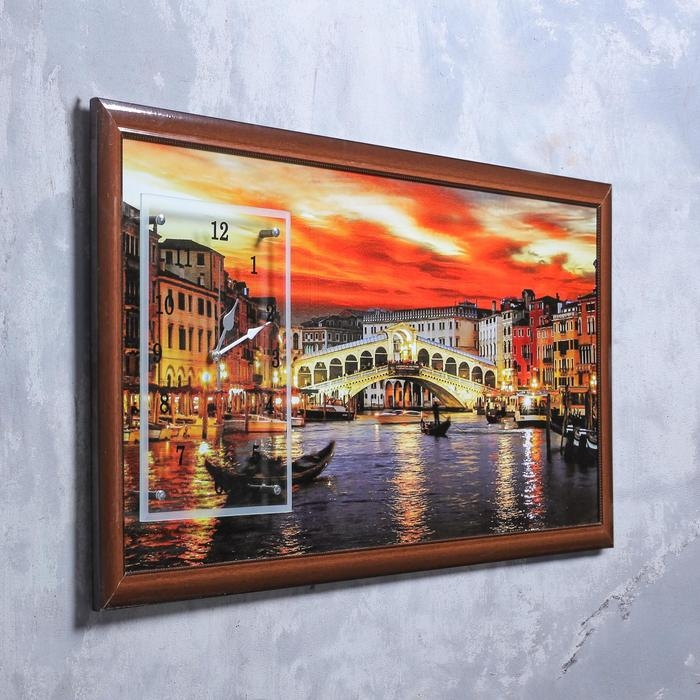 Часы-картина настенные, серия: Город, "Закат в Венеции", 50 х 100 см