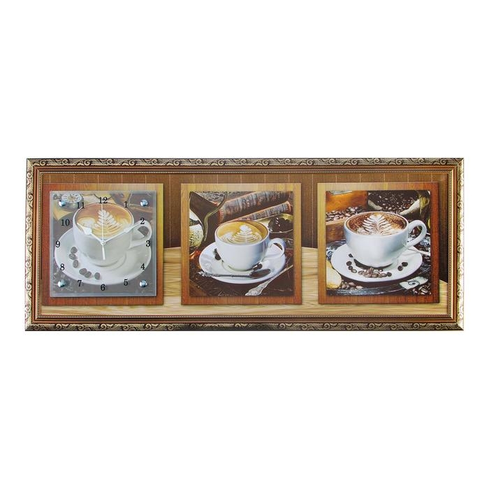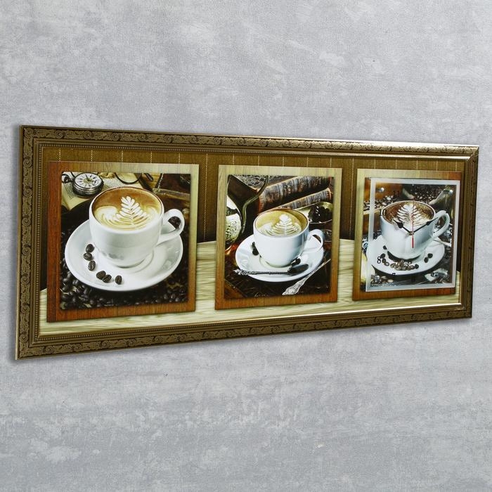 Часы-картина настенные, серия: Кухня, "Кофейная церемония", 35 х 100 см