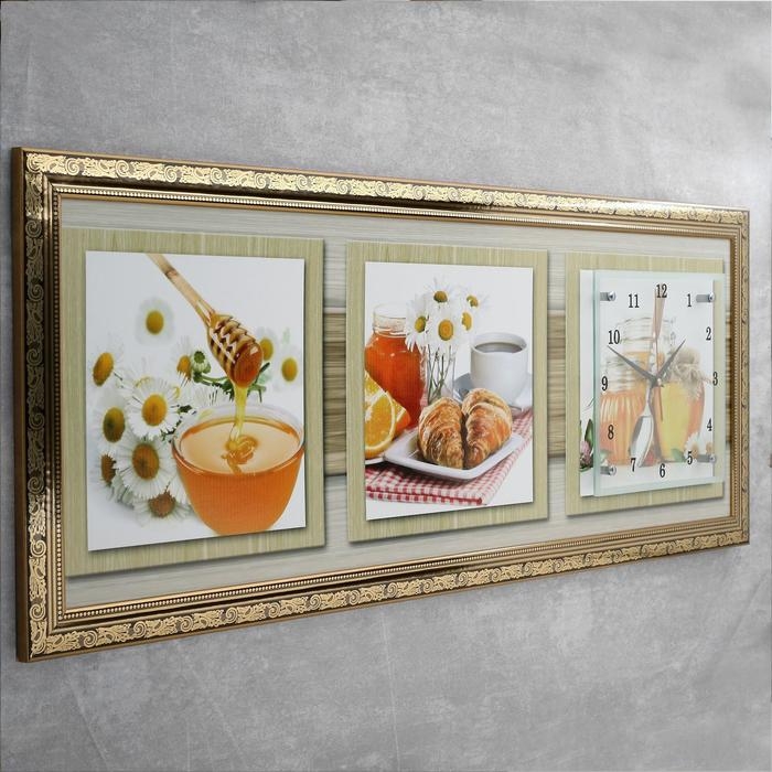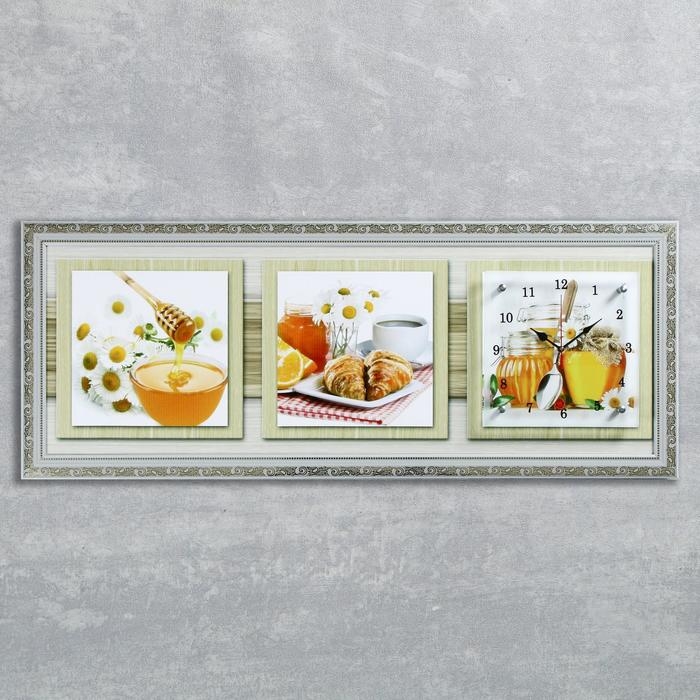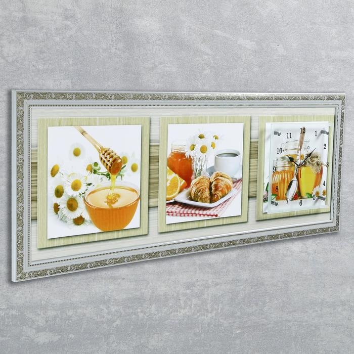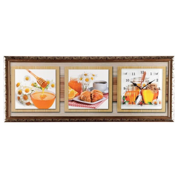 Часы-картина настенные, серия: Кухня, "Медовая фантазия", 35 х 100 см