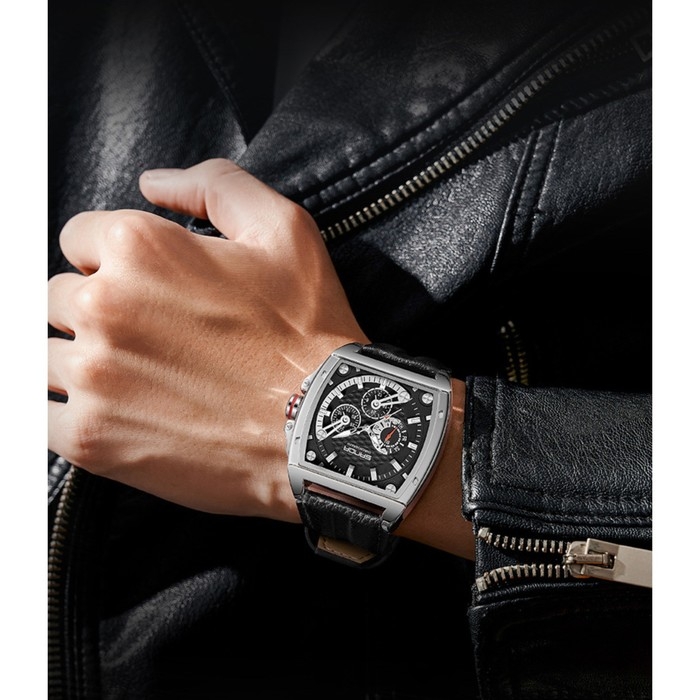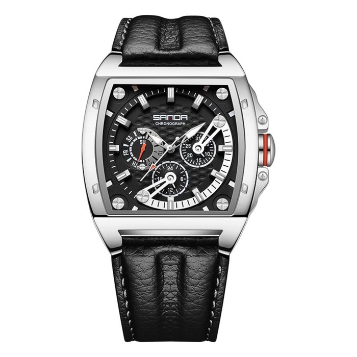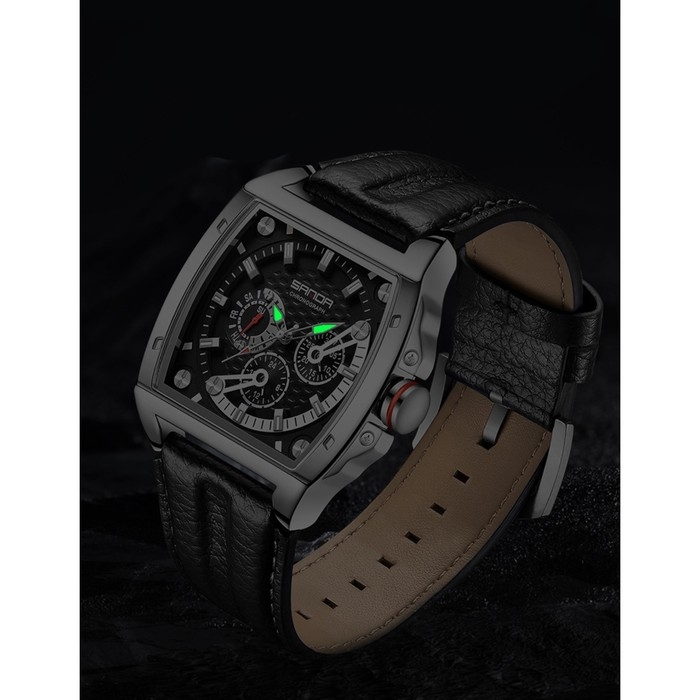 Часы наручные, d-4.8 см, хронограф, светящиеся, водонепроницаемые, ремешок кожа