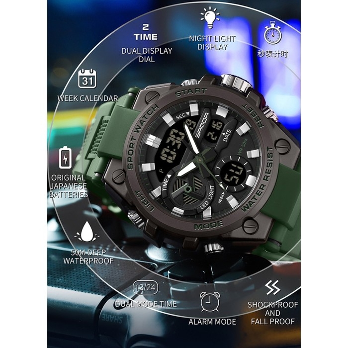 Часы наручные электронные, d-5.3 см, будильник, календарь, подсветка, ремешок силикон