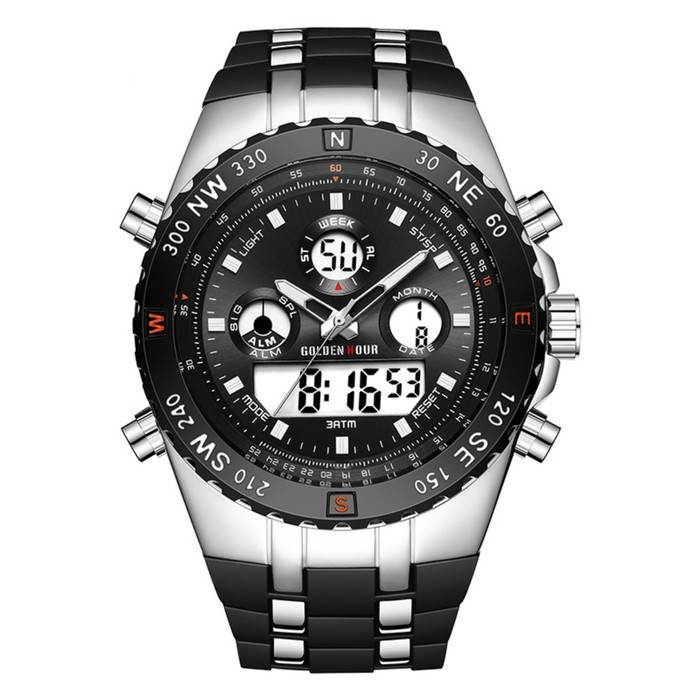 Часы наручные электронные, d-5 см, с будильником, календарем, подсветкой, 1 АТМ
