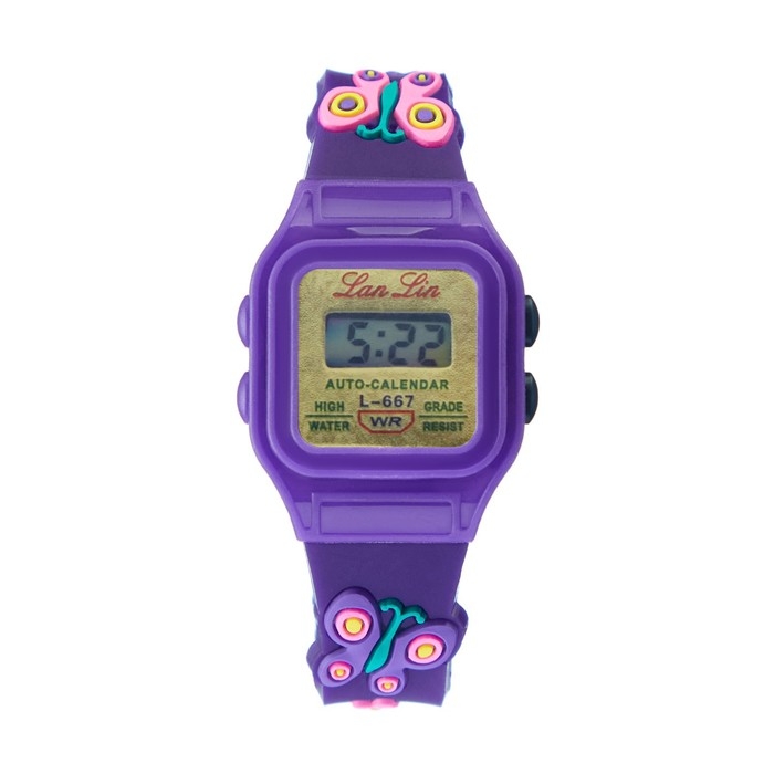 Часы наручные электронные детские "Бабочки", d-3 см, длина 20 см