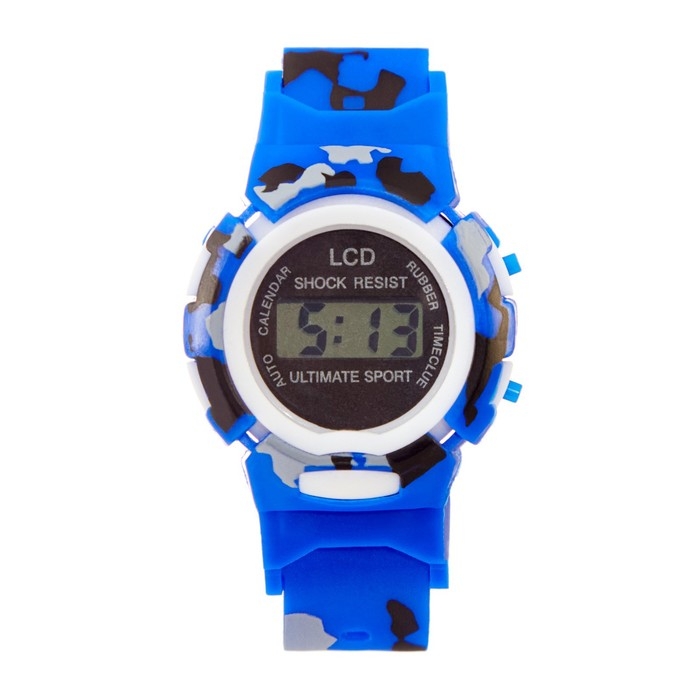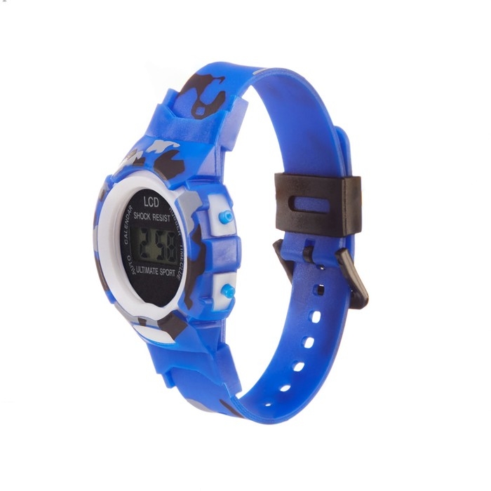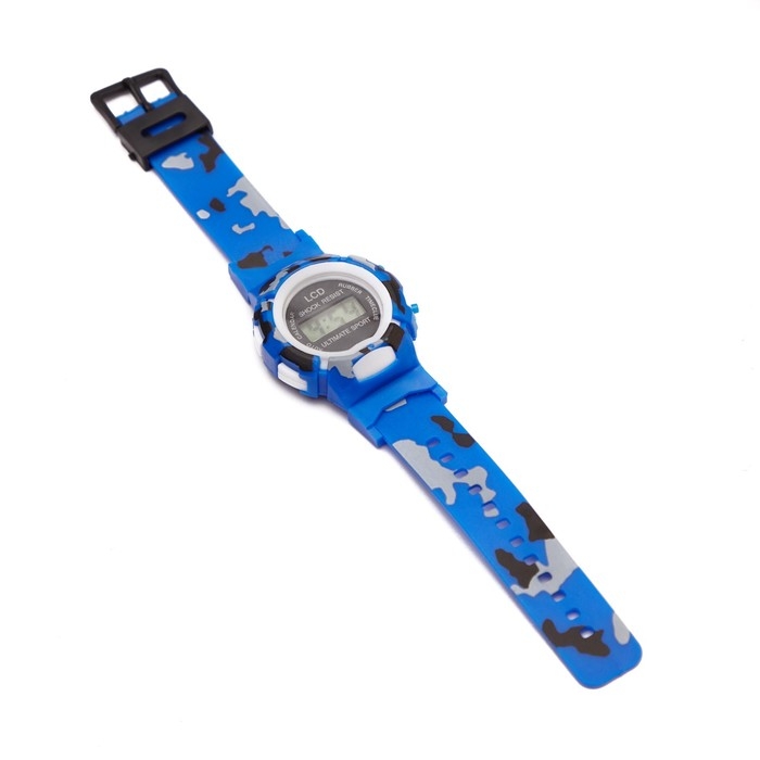 Часы наручные электронные, детские, d-4 см, ремешок l-22 см, синий камуфляж