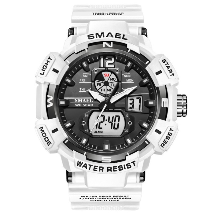 Часы наручные электронные, с будильником, d-5.3 см, ремешок l-26 см, 5 ATM, белые