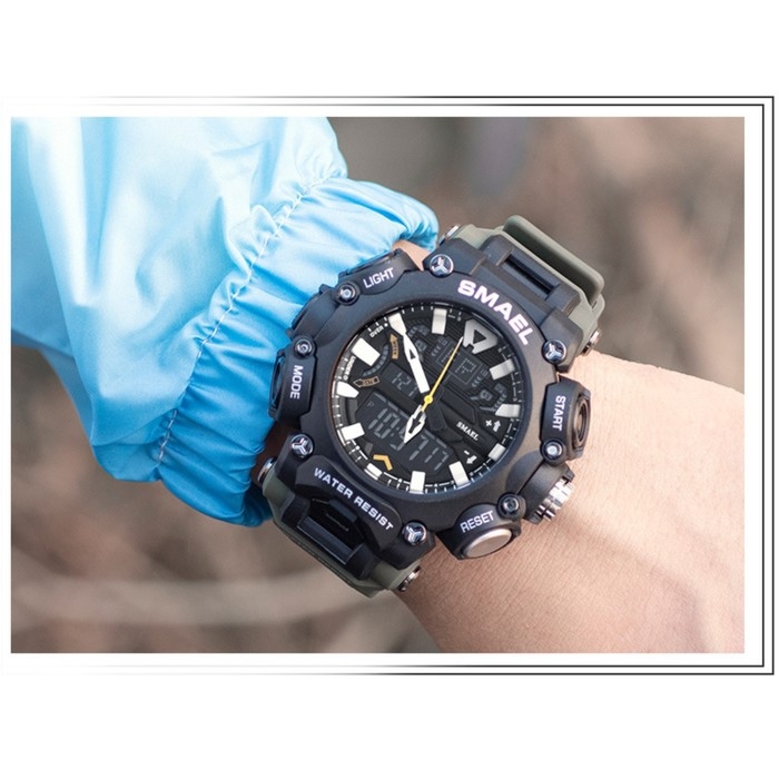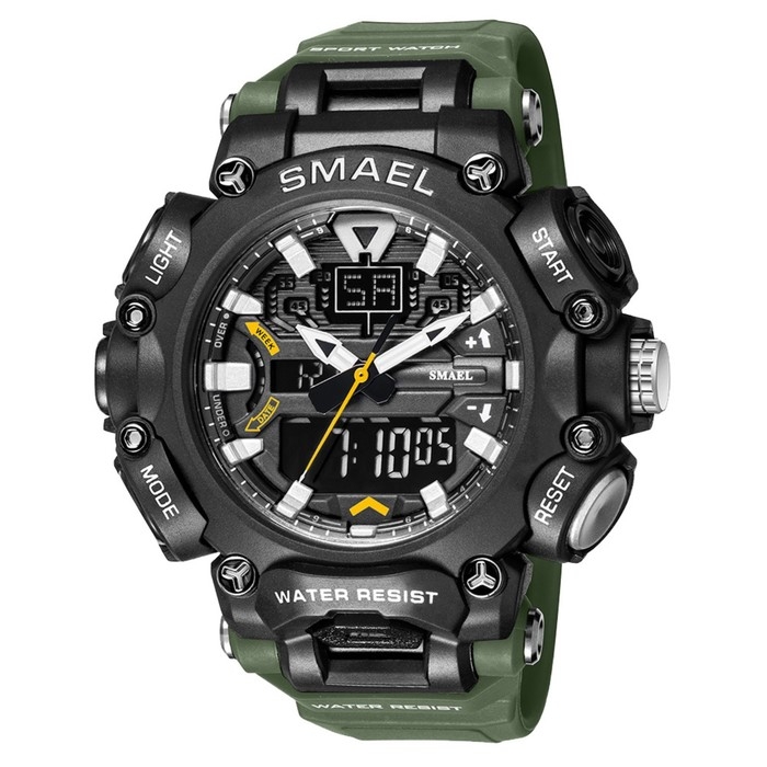 Часы наручные электронные, с будильником, d-6.1 см, ремешок l-26 см, 5 ATM, зеленый ремешок 974231