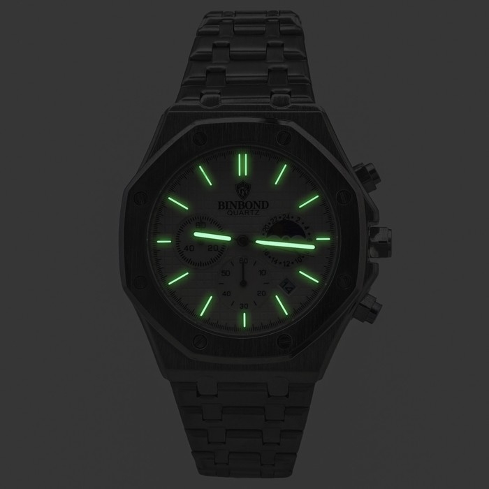 Часы наручные кварцевые мужские, d-4.4 см, ремешок l-26 см, 3 АТМ, светящиеся