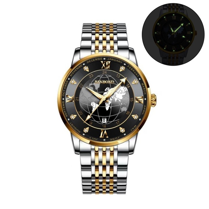 Часы наручные кварцевые мужские, d-4 см, ремешок l-26 см, 5 АТМ, светящиеся
