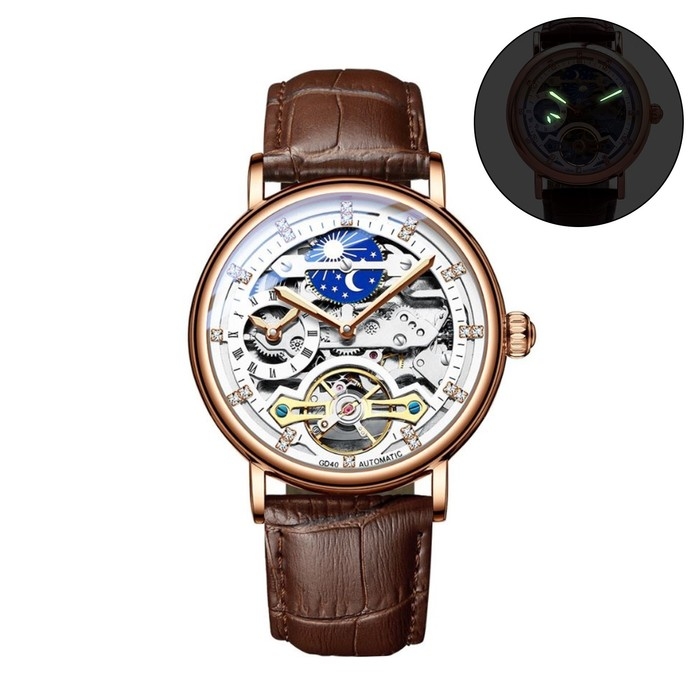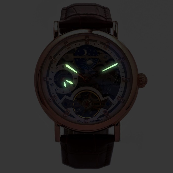 Часы наручные механические мужские, d-4.5 см, ремешок l-26 см, 3 АТМ, светящиеся