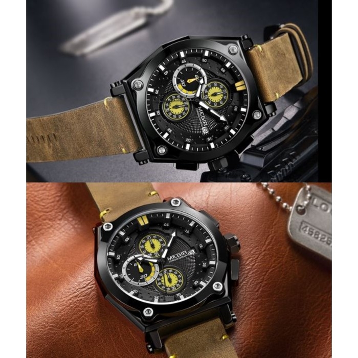 Часы наручные мужские, d-4.7 см, с хронографом, 3 АТМ, светящиеся, коричневые