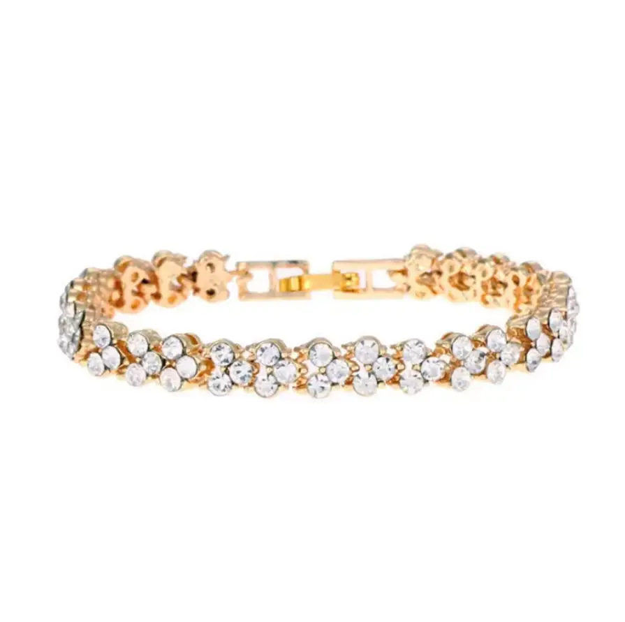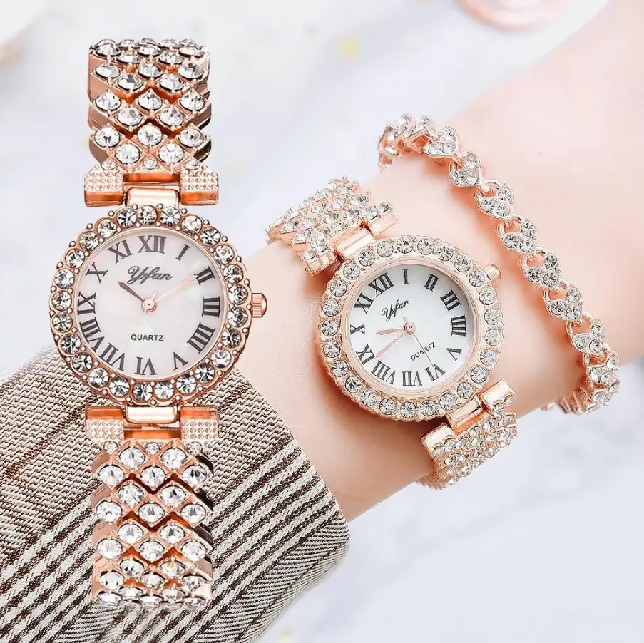 Часы наручные со стразами и браслет розовое золото