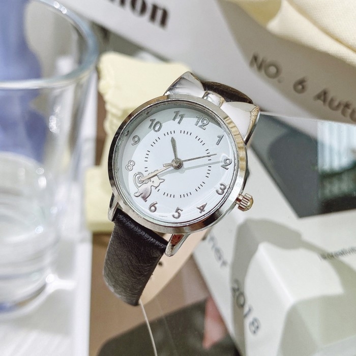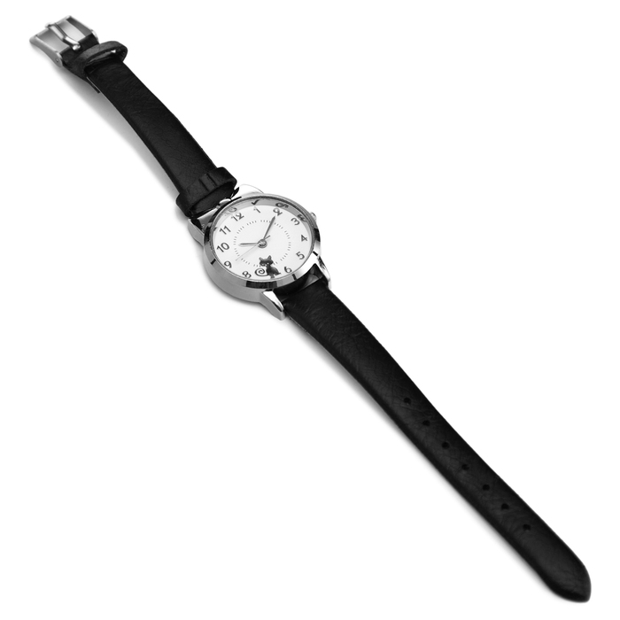Часы наручные женские "Котик", d-2.8 см, черный ремешок