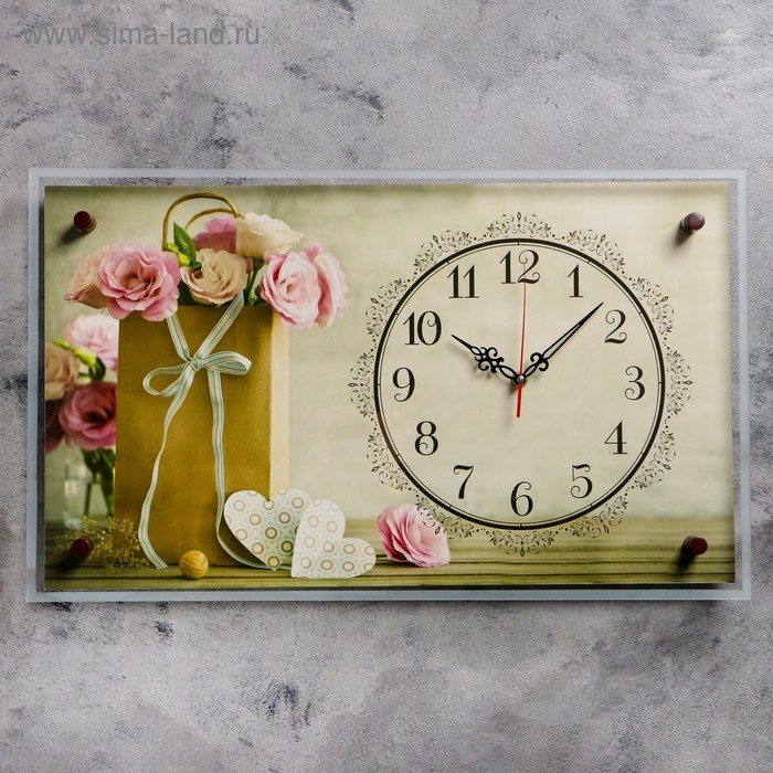 Часы настенные: Цветы, бесшумные, 35 х 60 см