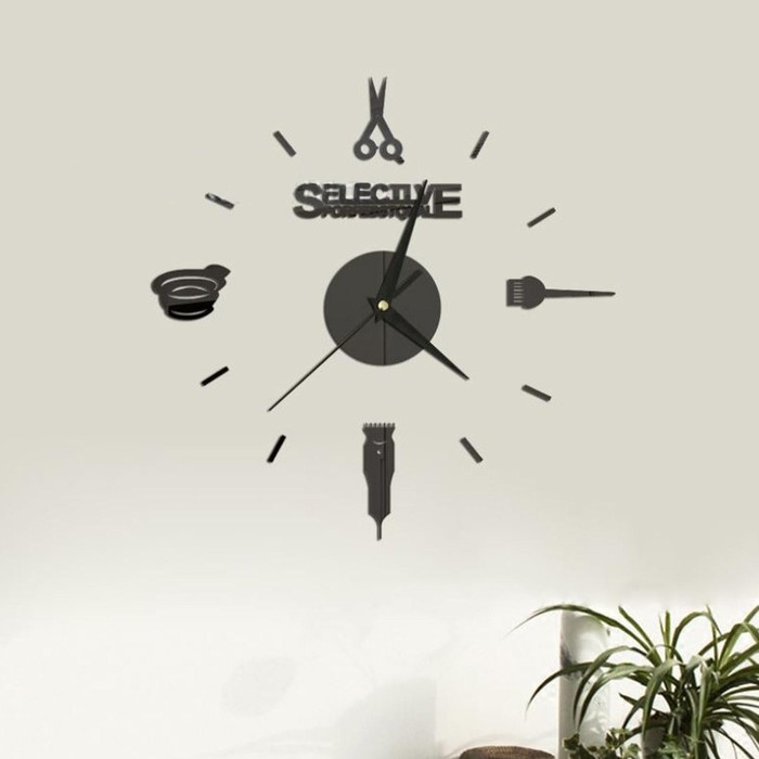 Часы настенные интерьерные, 3d "Парикмахер", наклейка, большие, d-45 см