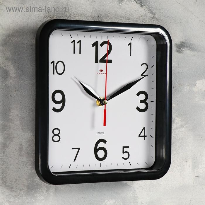 Часы настенные, интерьерные, бесшумные, 22 х 22 см, черные