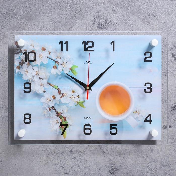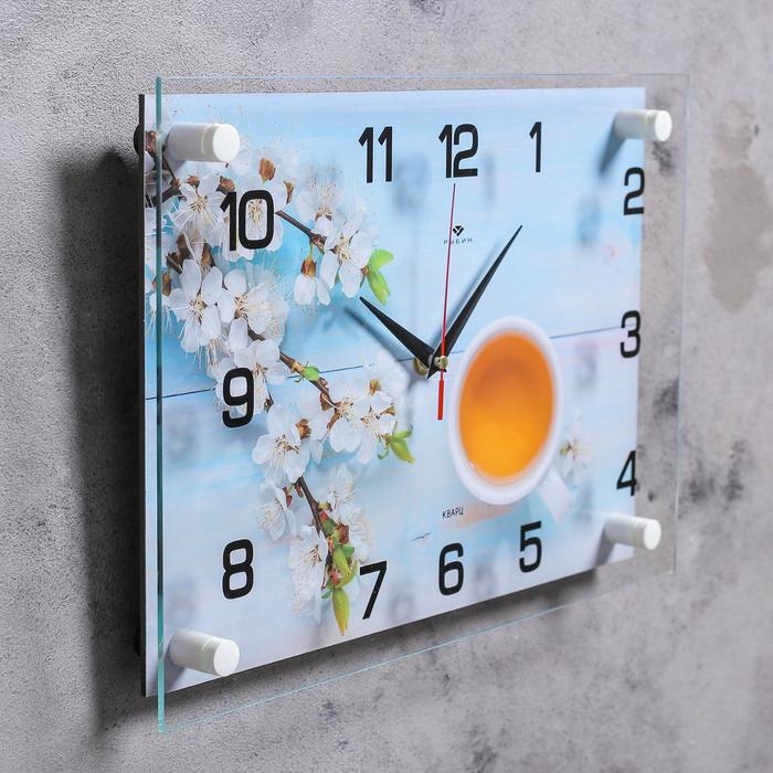 Часы настенные, интерьерные "Чай с цветами" 25х35 см, бесшумные