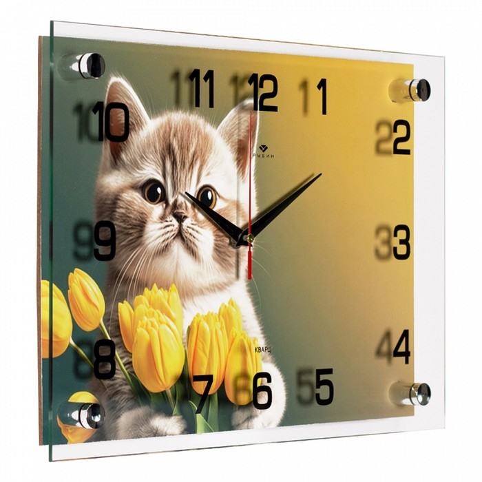 Часы настенные, интерьерные "Котёнок в тюльпанах", 25 х 35 см, бесшумные