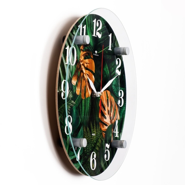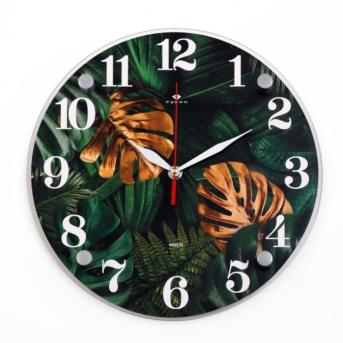 Часы настенные, интерьерные "Листья", d-30 см, бесшумные