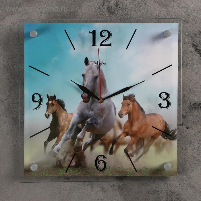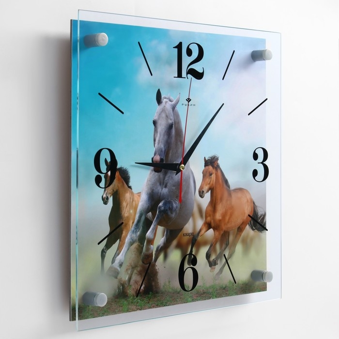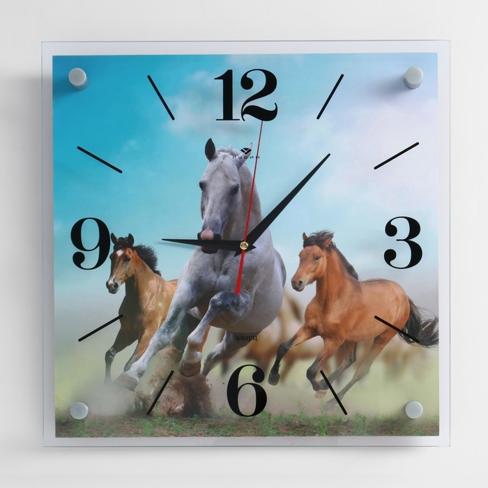 Часы настенные, интерьерные "Лошади", бесшумные, 35 х 35 см