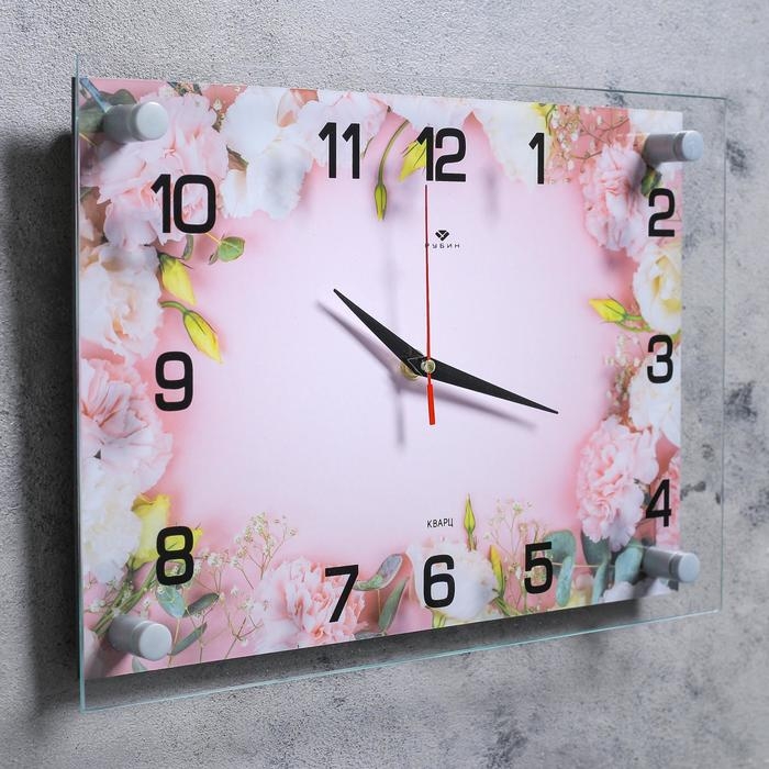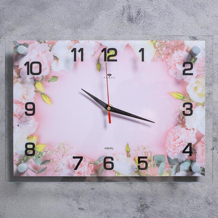 Часы настенные, интерьерные "Розовые цветы", бесшумные, 25 х 35 см, АА