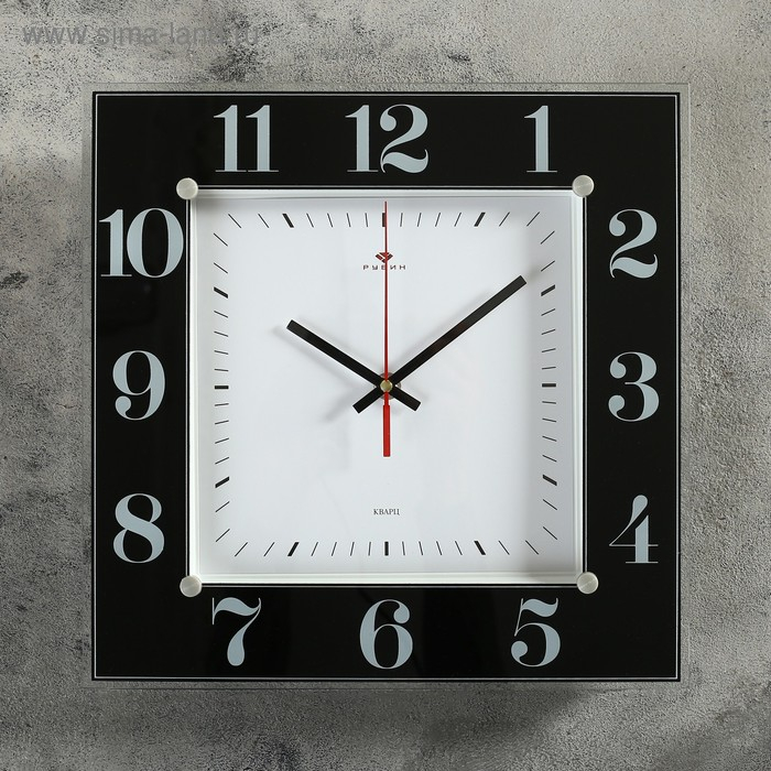 Часы настенные, интерьерные "Рубин", бесшумные, 31 х 31 см, черные