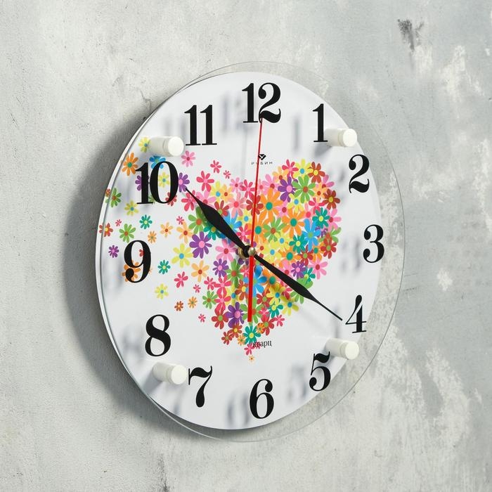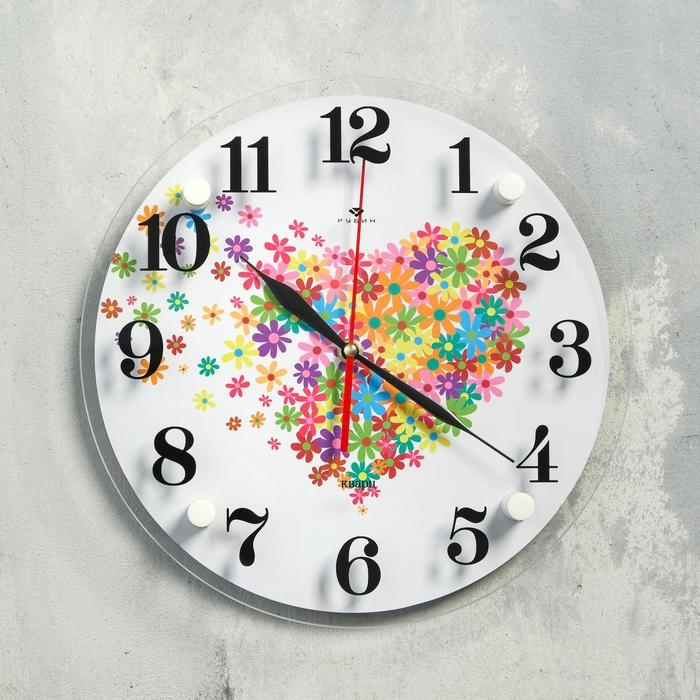 Часы настенные, интерьерные "Сердце из цветочков", бесшумные
