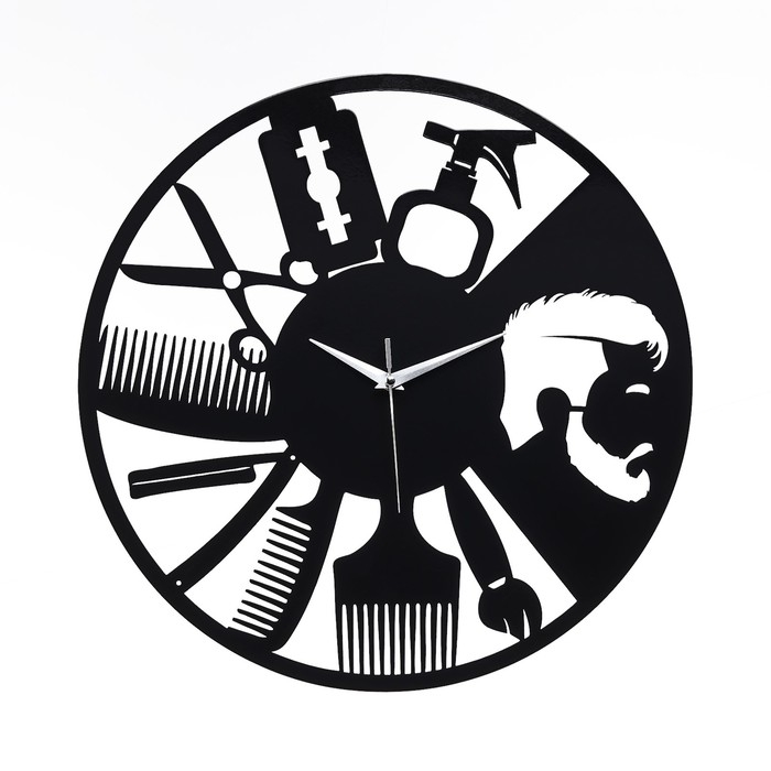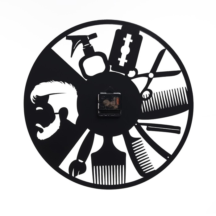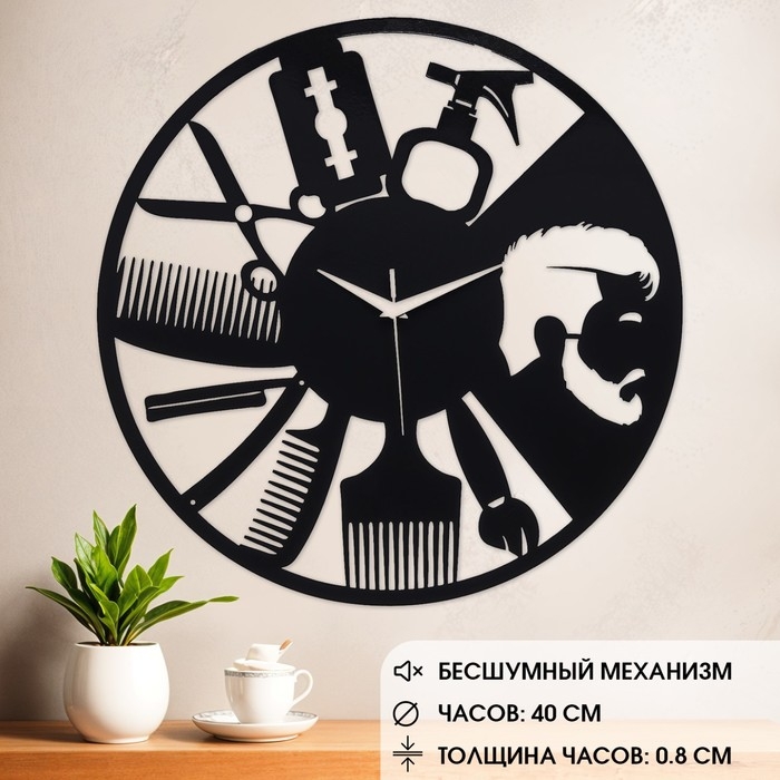 Оригинальный и стильный дизайн. Настенные часы станут незабываемым подарком для барбера, который делает мужские причёски, парикмахера или владельца салона красоты на профессиональный праздник, День Рождения или любой другой подходящий праздник.
