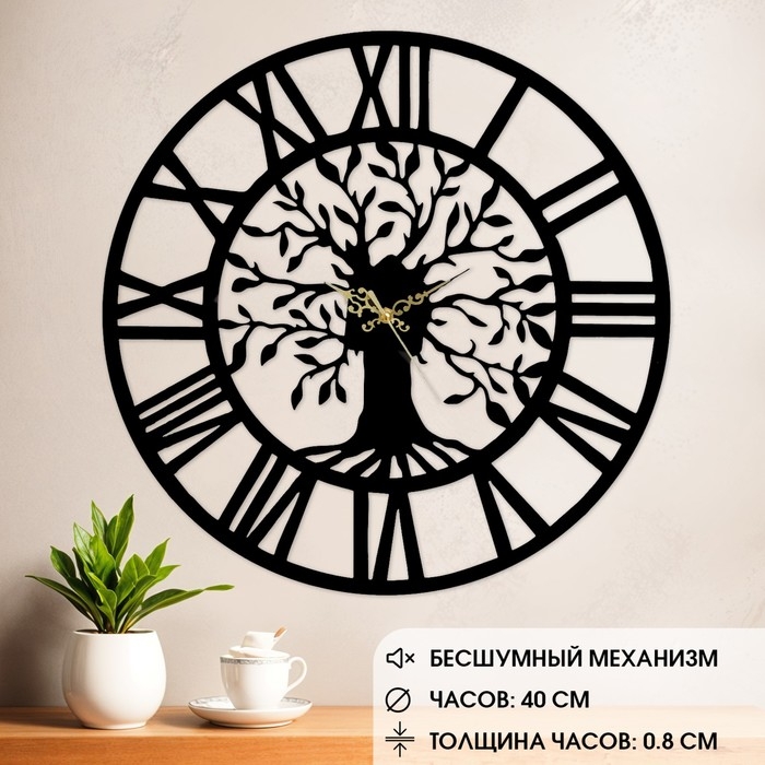 Часы настенные из металла "Древо жизни",бесшумные, d-40 см, АА