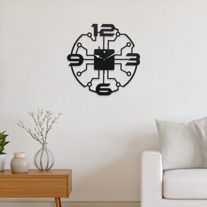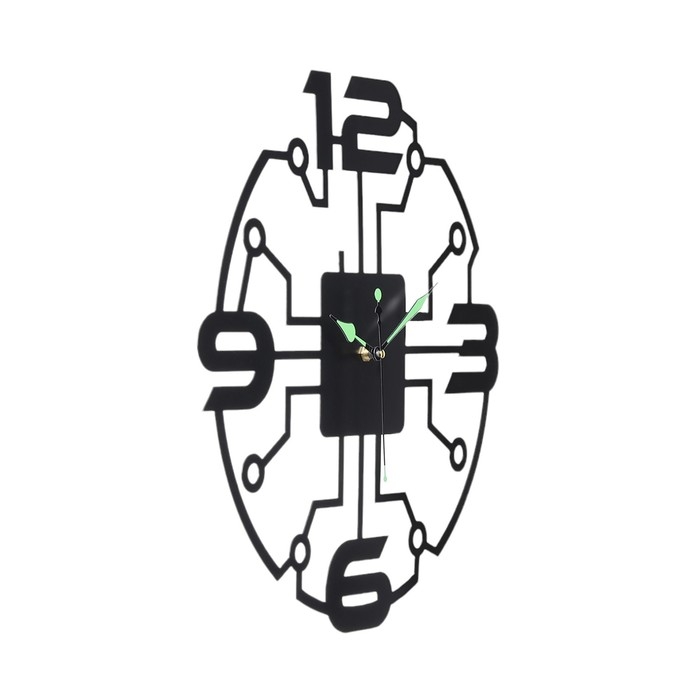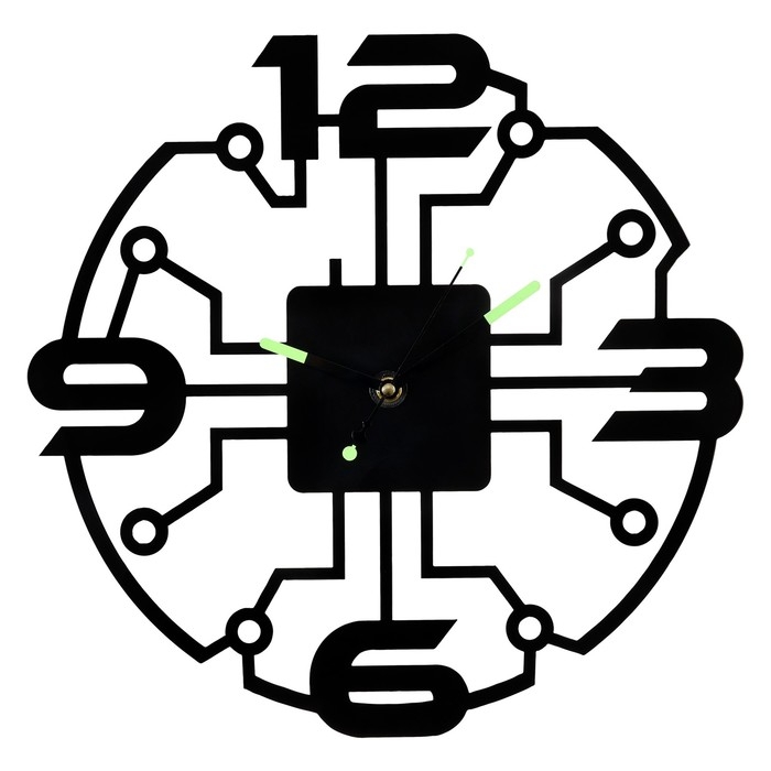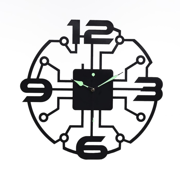 Часы настенные из металла "Микросхема", бесшумные, d-40 см, светящиеся, АА