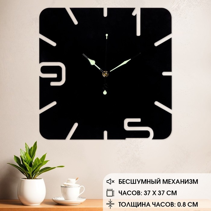 Часы настенные из металла "Минимализм", бесшумные, 37 х 37 см, светящиеся