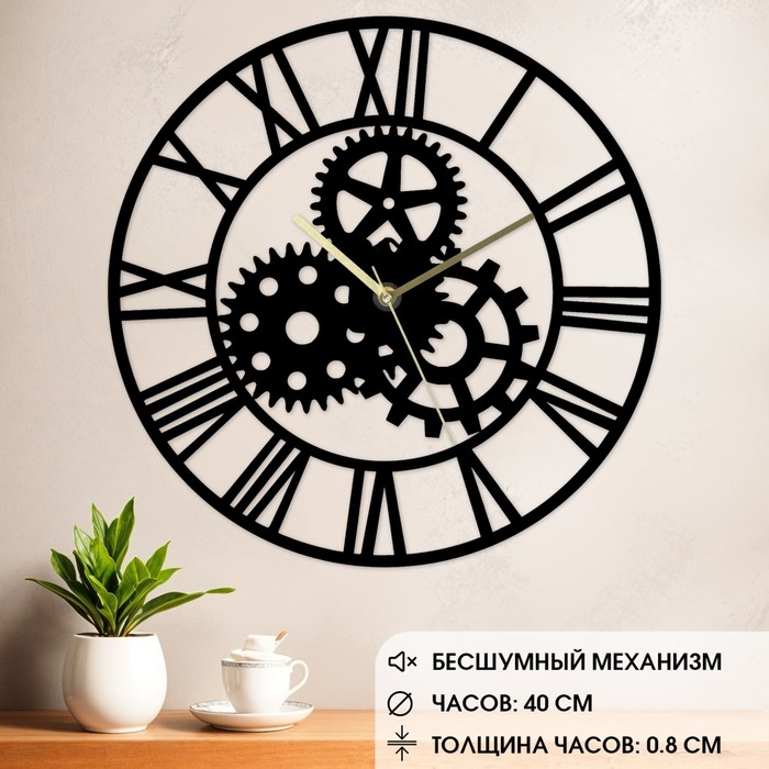 Часы настенные из металла "Шестеренки", бесшумные, d-40 см, АА