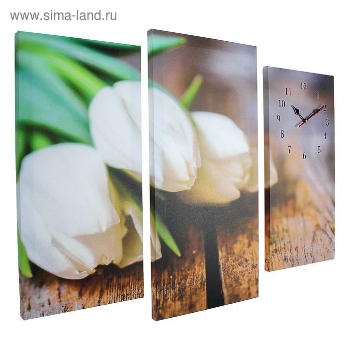 Часы настенные модульные «Белые тюльпаны», 60 × 80 см