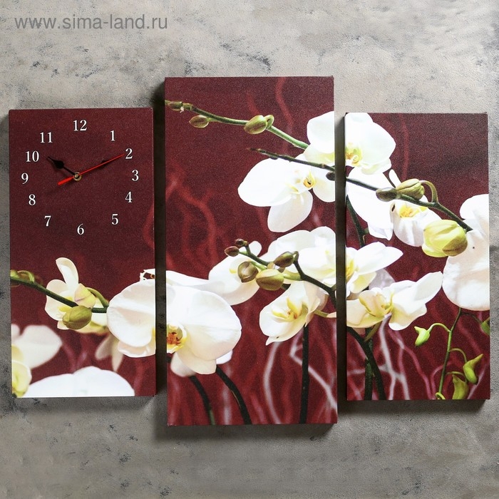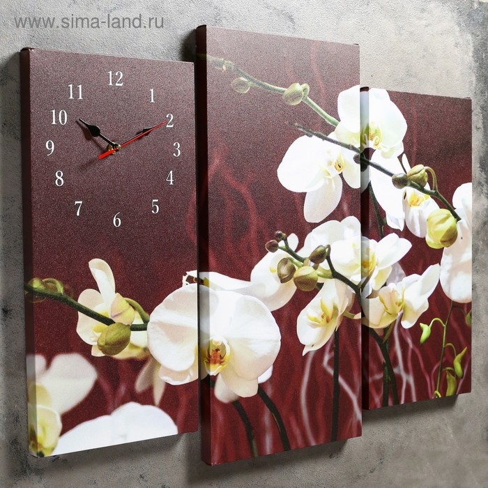 Часы настенные, модульные, серия: Цветы, "Белые орхидеи", 60х80 см