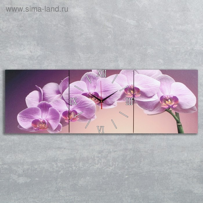 Часы настенные, модульные, серия: Цветы, "Фиолетовые орхидеи", 35х110 см