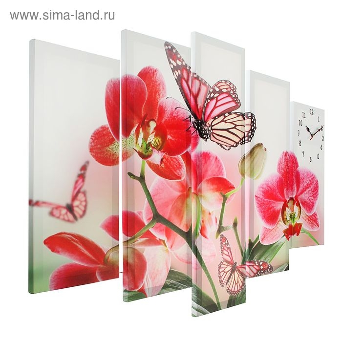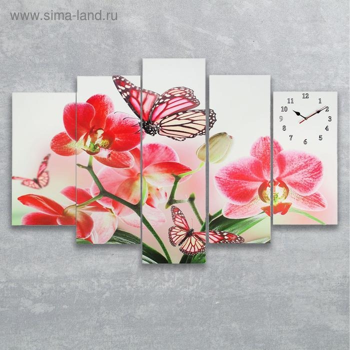 Часы настенные, модульные, серия: Цветы, "Орхидеи и бабочка", 80х140 см