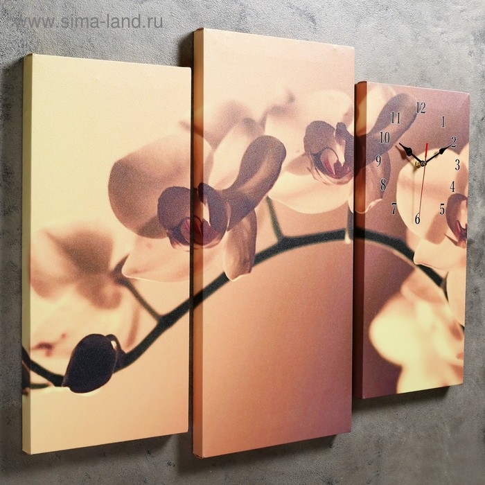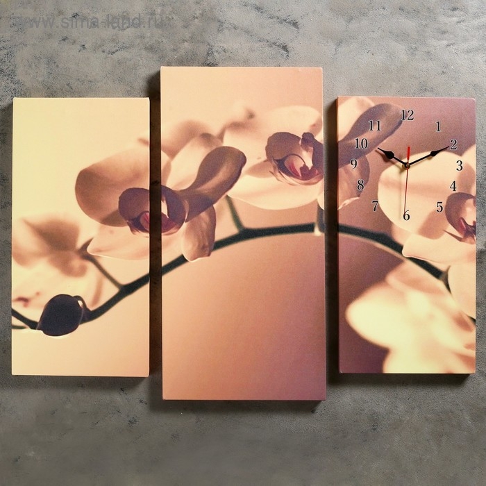 Часы настенные, модульные, серия: Цветы, "Веточка орхидеи", 60х80 см
