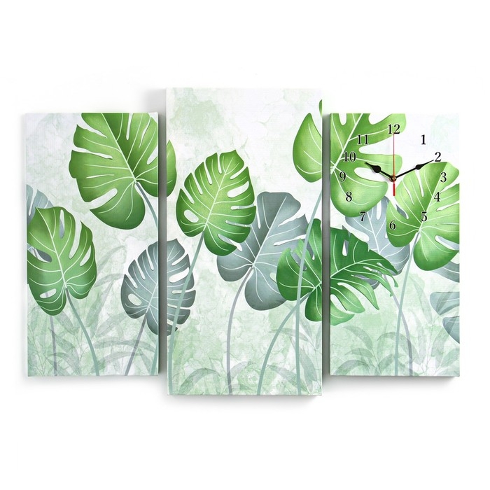 Стильные бесшумные часы-картина удачно оформят любой интерьер от современного до классического. Модульная картина с часами оснащена кварцевым часовым механизмом с тихим ходом. Этот триптих идеально подойдет для кухни, а также спальни и гостиной, кабинета, офиса, прихожей, пригодится в квартире, дома, на даче.