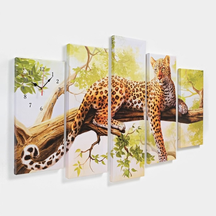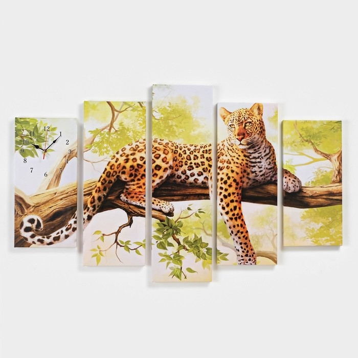 Часы настенные, модульные, серия: Животный мир, "Леопард", 80х140 см