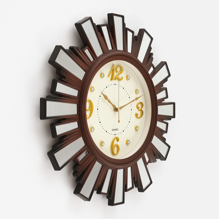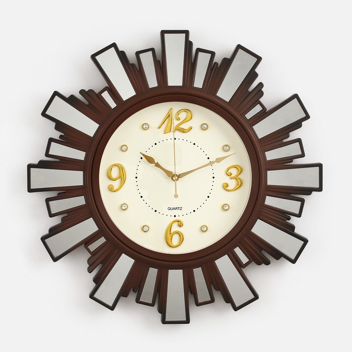 Часы настенные, серия: Интерьер "Лучики Солнца",плавный ход, d=53 см, с зеркалом,коричневые