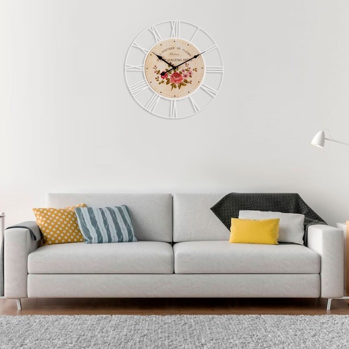Часы настенные, серия: Интерьер, "Розы", плавный ход, d-45 см