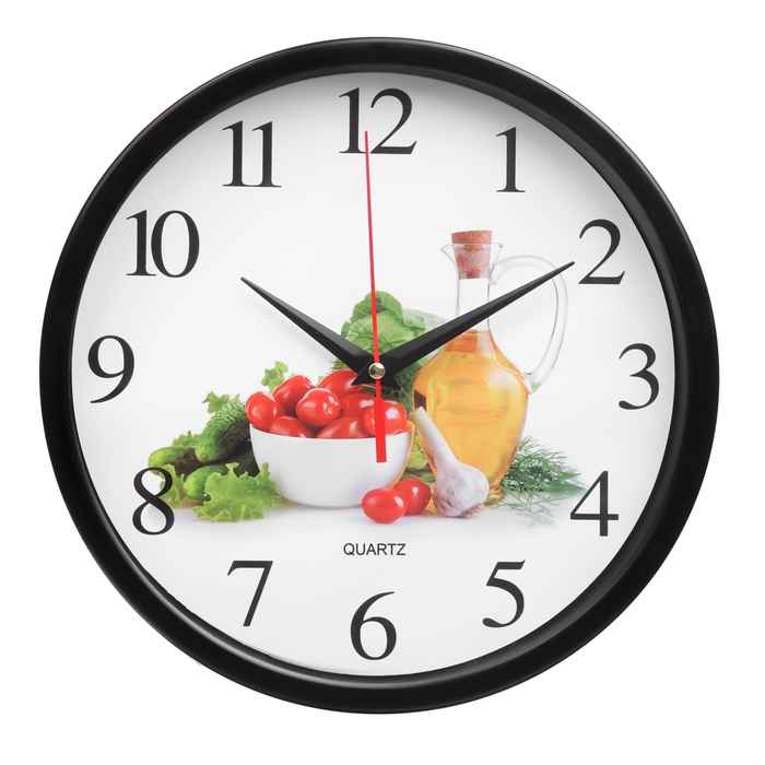Часы настенные, серия: Кухня, "Овощи и масло", плавный ход, d-26.5 см