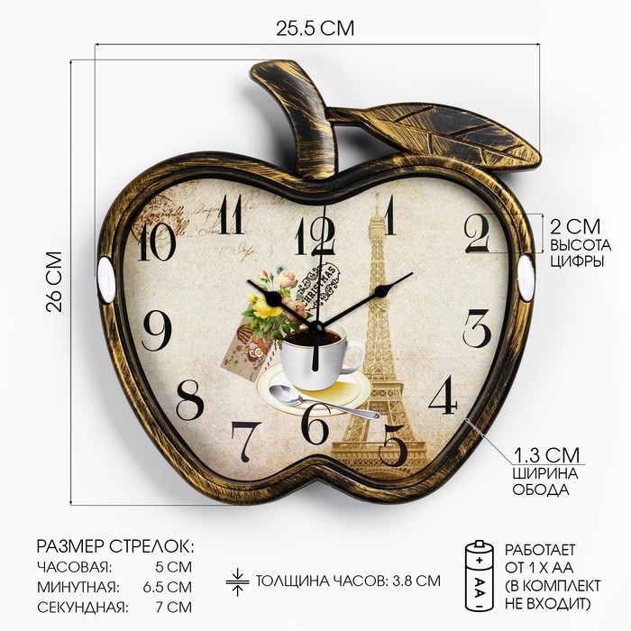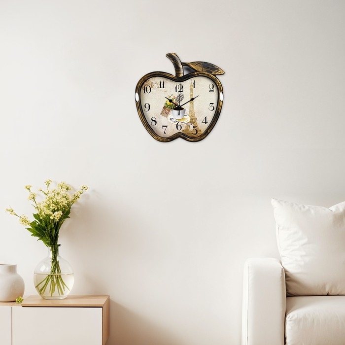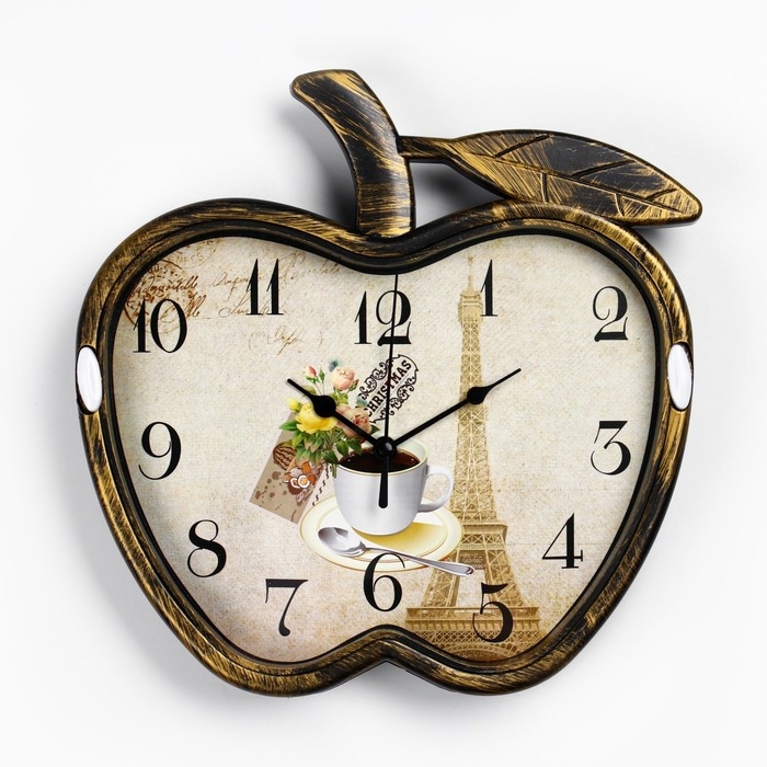 Часы настенные, серия: Кухня, "Яблоко", дискретный ход, 26 х 25.5 см, АА, бронзовый