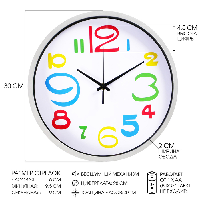 Часы настенные "Яркие цифры", d-29 см, плавный ход
