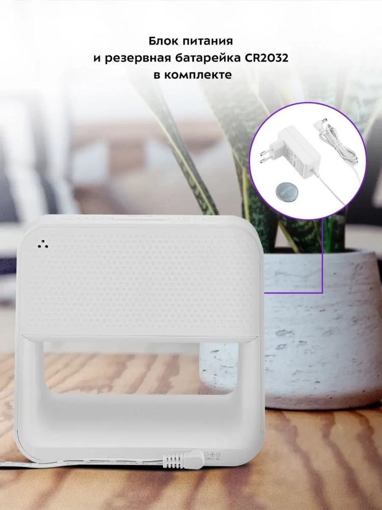 Внутри отсека для батареек установлена резервная батарейка типа CR2032, чтобы при отключении от источника питания настройки не сбивались. Резервная батарейка нужна только для сохранения настроек, настольные часы не будут работать без подключения к источнику питания.