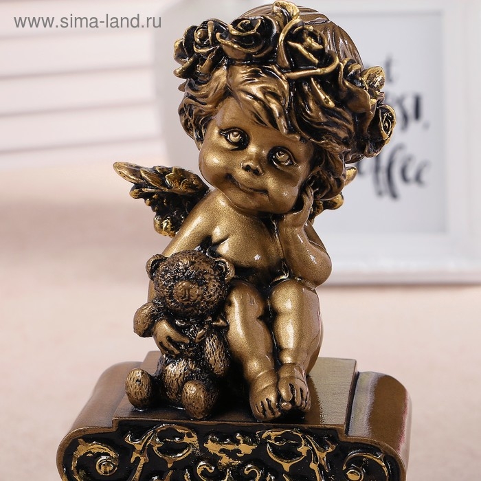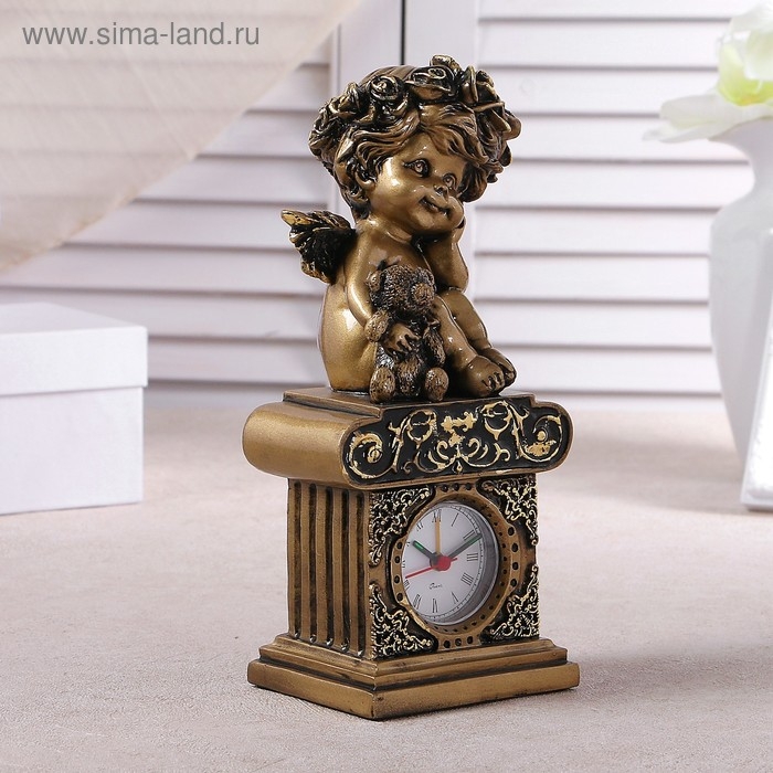 Часы настольные интерьерные каминные"Ангел с медвежонком", h-25.5 см