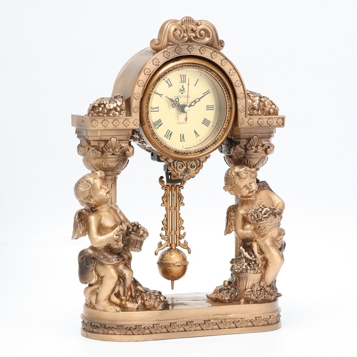 Часы настольные интерьерные на батарейках "Ангелы", маятник, 25 х 33 см, циферблат d-8 см