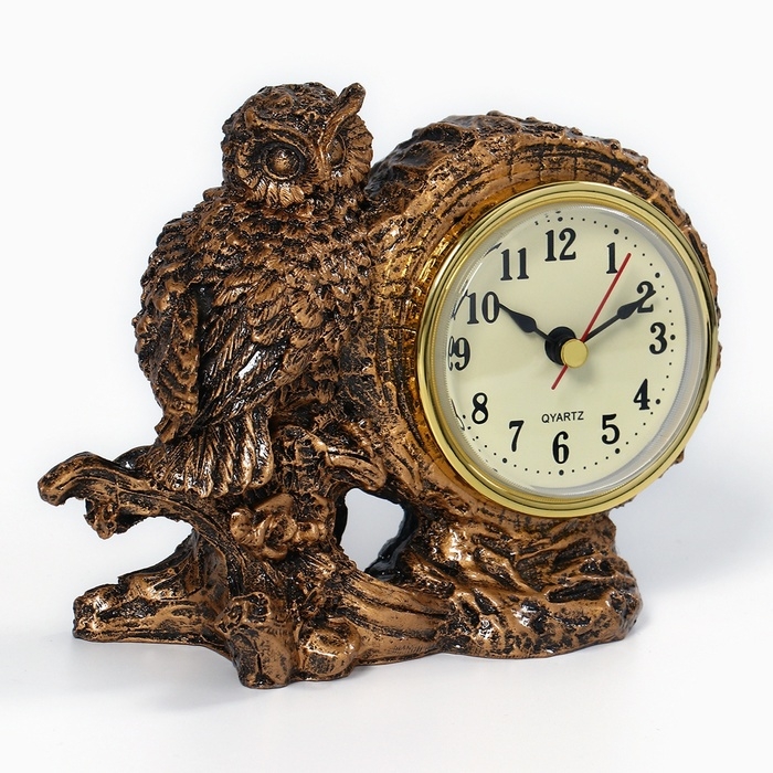 Часы настольные, каминные "Сова", 15 х 4 х 12 см, d циферблата - 6.3 см
