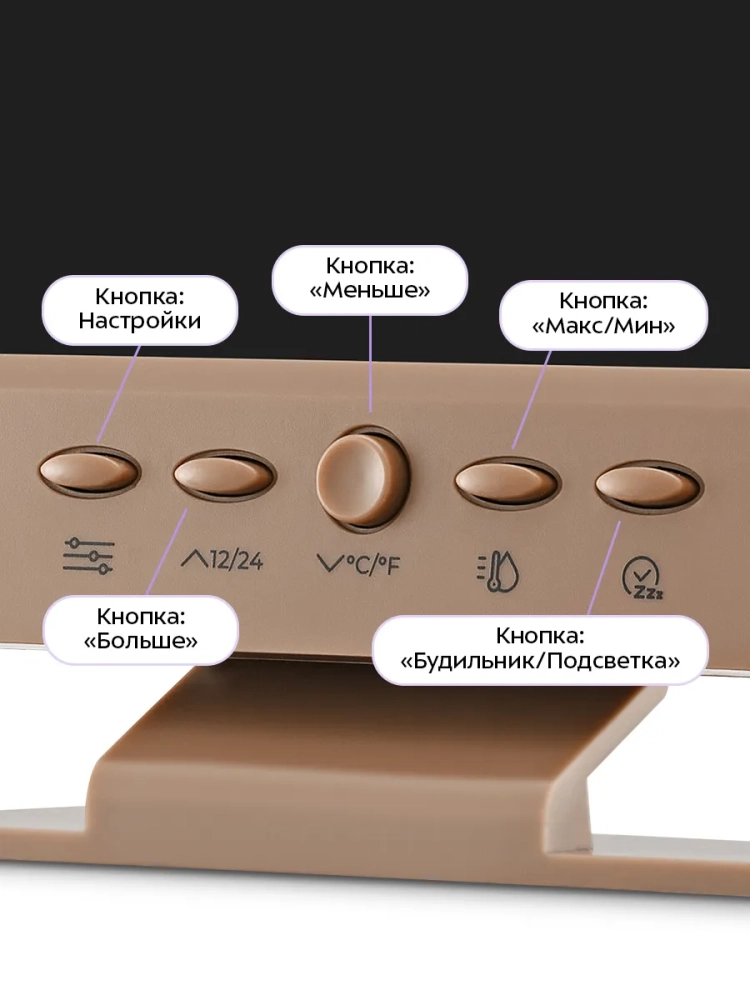 Электро часы с термометром и гигрометром — это не только практичное, но и стильное решение для вашего интерьера. Светящийся LED циферблат и компактный размер делают их подходящими для любого стиля, будь то современный или классический. Эти настольные часы станут отличным дополнением к вашему дому, добавляя функциональность и элегантность.